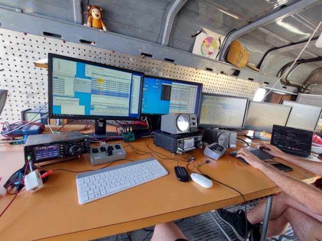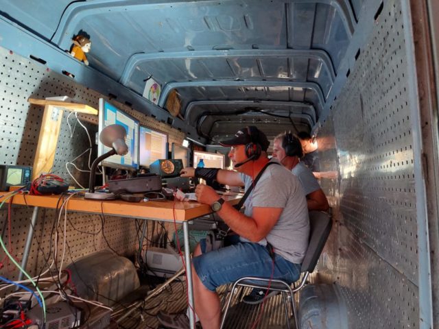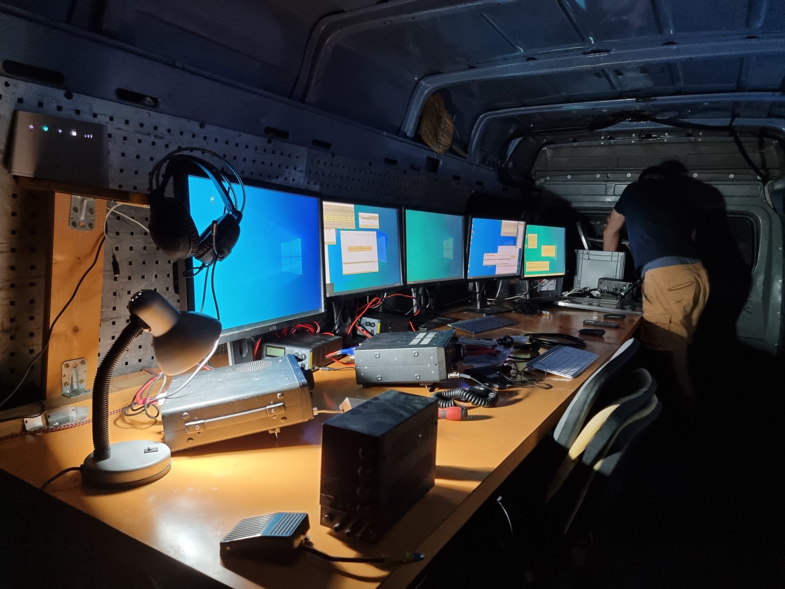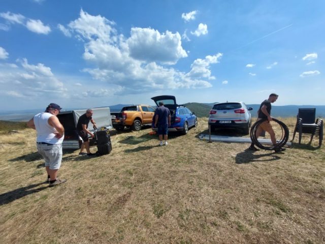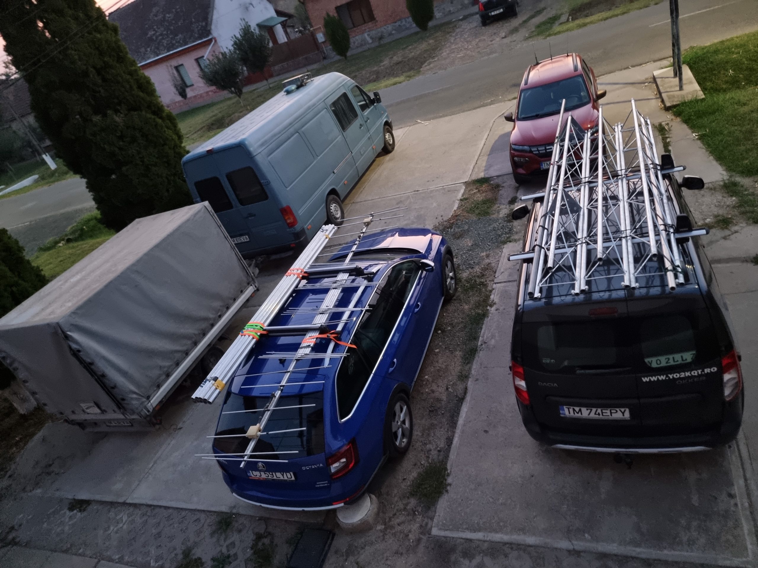 Undeva la începutul lunii august, o parte din echipamente au fost aduse din Sighetu Marmației la Cluj, urmând a fi făcute mici retușuri și lista completă cu lucrurile necesare. Am mai avut nevoie de câțiva rulmenți de ancorare, câteva bride pentru prins antenele pe pilon și de refăcut cablurile de sumare a antenelor. Înaintea concursului, cu vreo două săptămâni s-au pus detaliile exacte la punct, rezolvat închirierea dubei și a remorcii pentru generatorul de 800 kg.. O să fim sinceri, eram cât pe ce să renunțăm după ce am văzut ce înseamnă montarea a unui pilon de 9m, și alte 3 sisteme de antena, coaxiale, demontat totul din locația permanentă, împachetat, dezpachetat etc. Dar pe ultima sută de metri am zis că nu ne facem 💩 din gură, și facem tot posibilul să facem ce am promis.